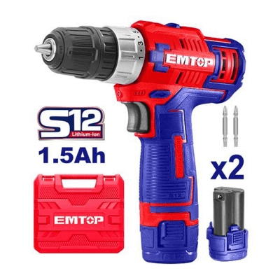 TALADRO Atornillador 10mm 20NM bat,12V c/car *EMTOP// ET-ECDL125114