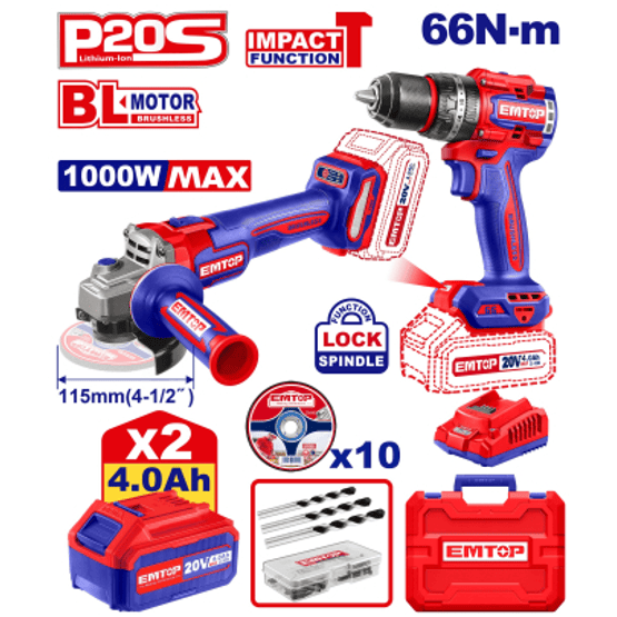 Combo Talad.imp.atornillador + Amoladora 41/2 *Emtop//ET-Eckl20273-4