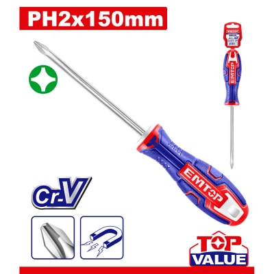 Destornillador Phillips imantado PH2x150mm *EMTOP// ET-ESDRPH2150