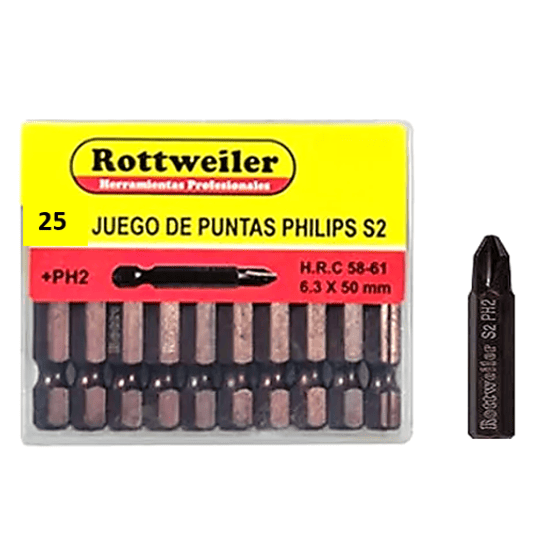 Punta Magnetica *Rotweiler -Set x 10 pzs. PH2 x 25 mm. cantidad