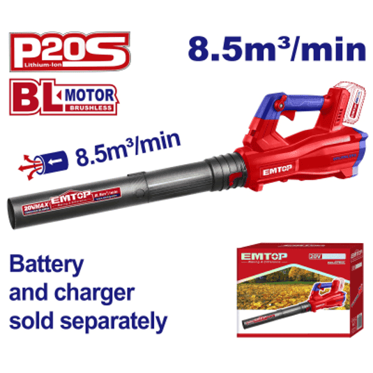 Soplador 20V 8,5m3 18500rpm 144k/h EMTOP//ET- ELAB20428